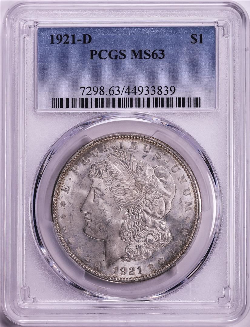 One 1921-D $1 Morgan Silver Dollar Coin PCGS MS63. PCGS Graded.