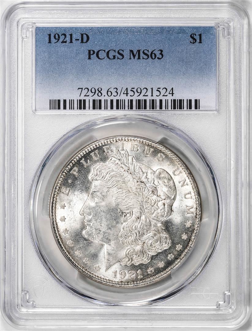 One 1921-D $1 Morgan Silver Dollar Coin PCGS MS63. PCGS Graded.