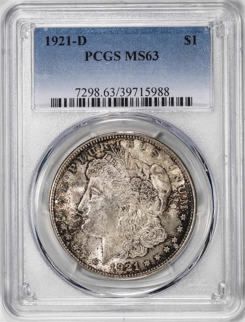 One 1921-D $1 Morgan Silver Dollar Coin PCGS MS63. PCGS Graded.
