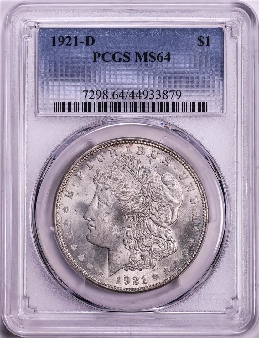 One 1921-D $1 Morgan Silver Dollar Coin PCGS MS64. PCGS Graded.