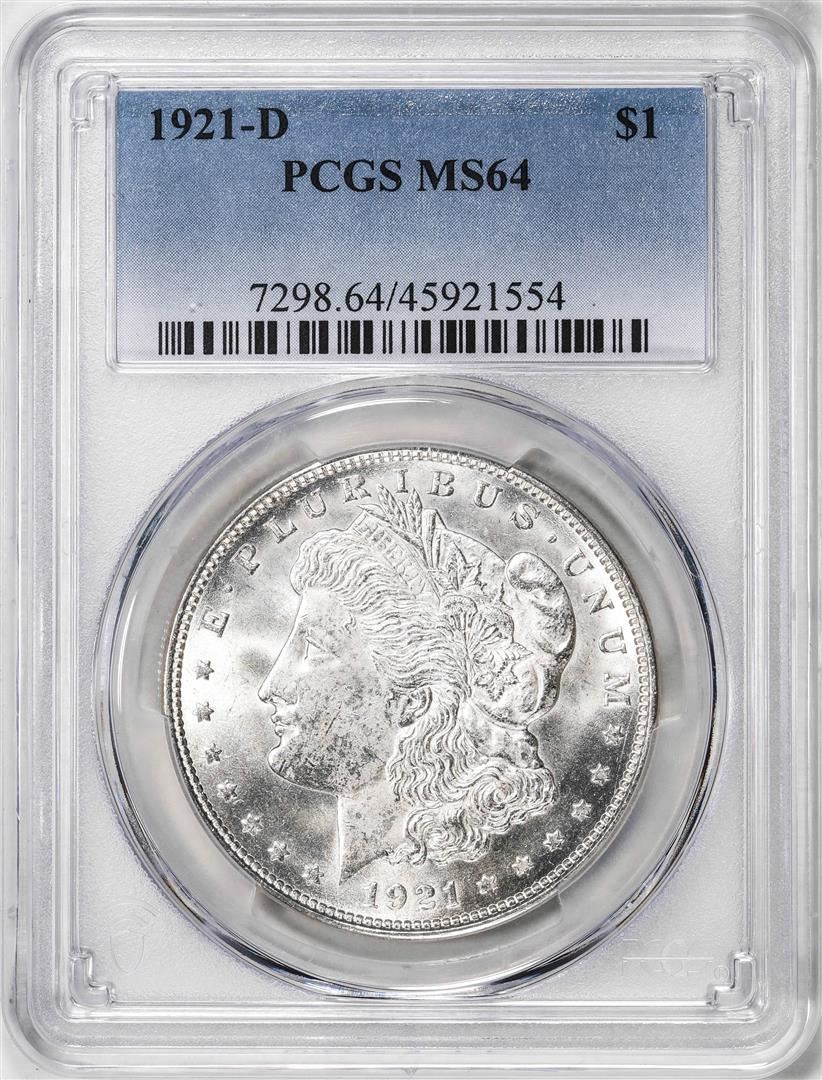 One 1921-D $1 Morgan Silver Dollar Coin PCGS MS64. PCGS Graded.