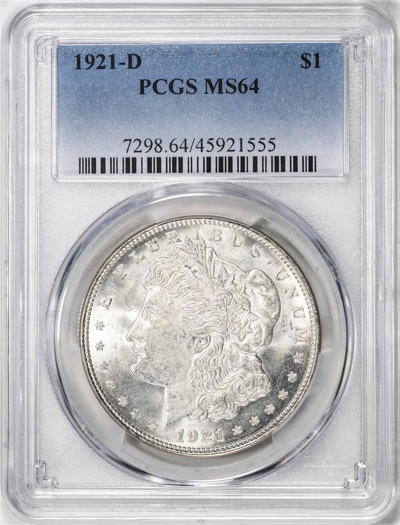 One 1921-D $1 Morgan Silver Dollar Coin PCGS MS64. PCGS Graded.