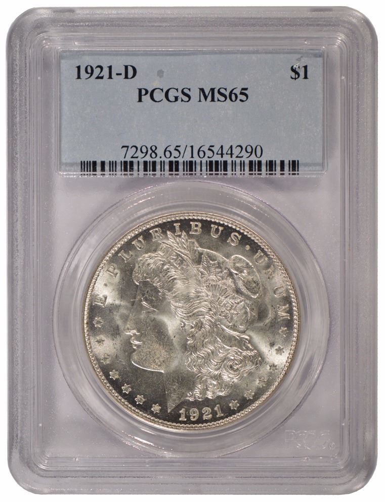 One 1921-D $1 Morgan Silver Dollar Coin PCGS MS65.