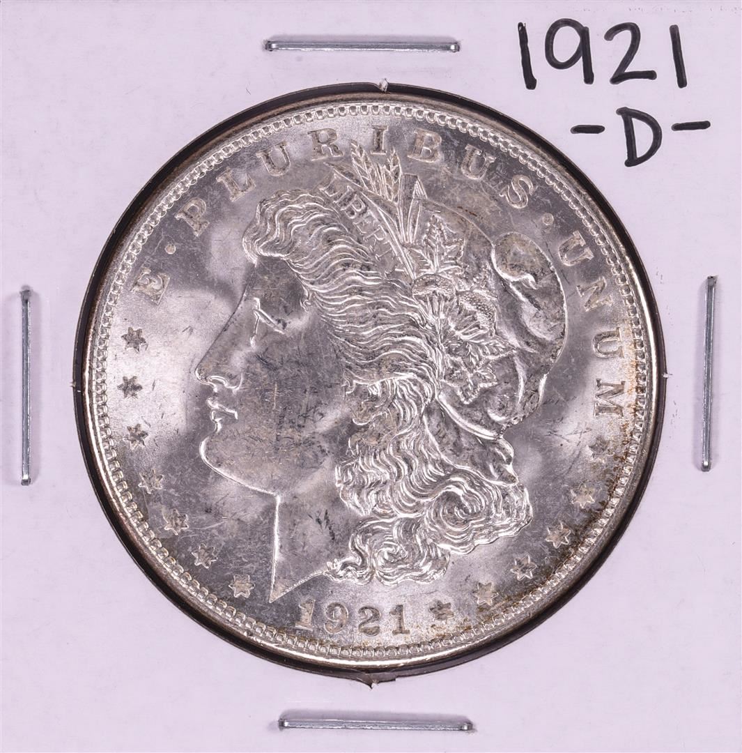 One 1921-D $1 Morgan Silver Dollar Coin.