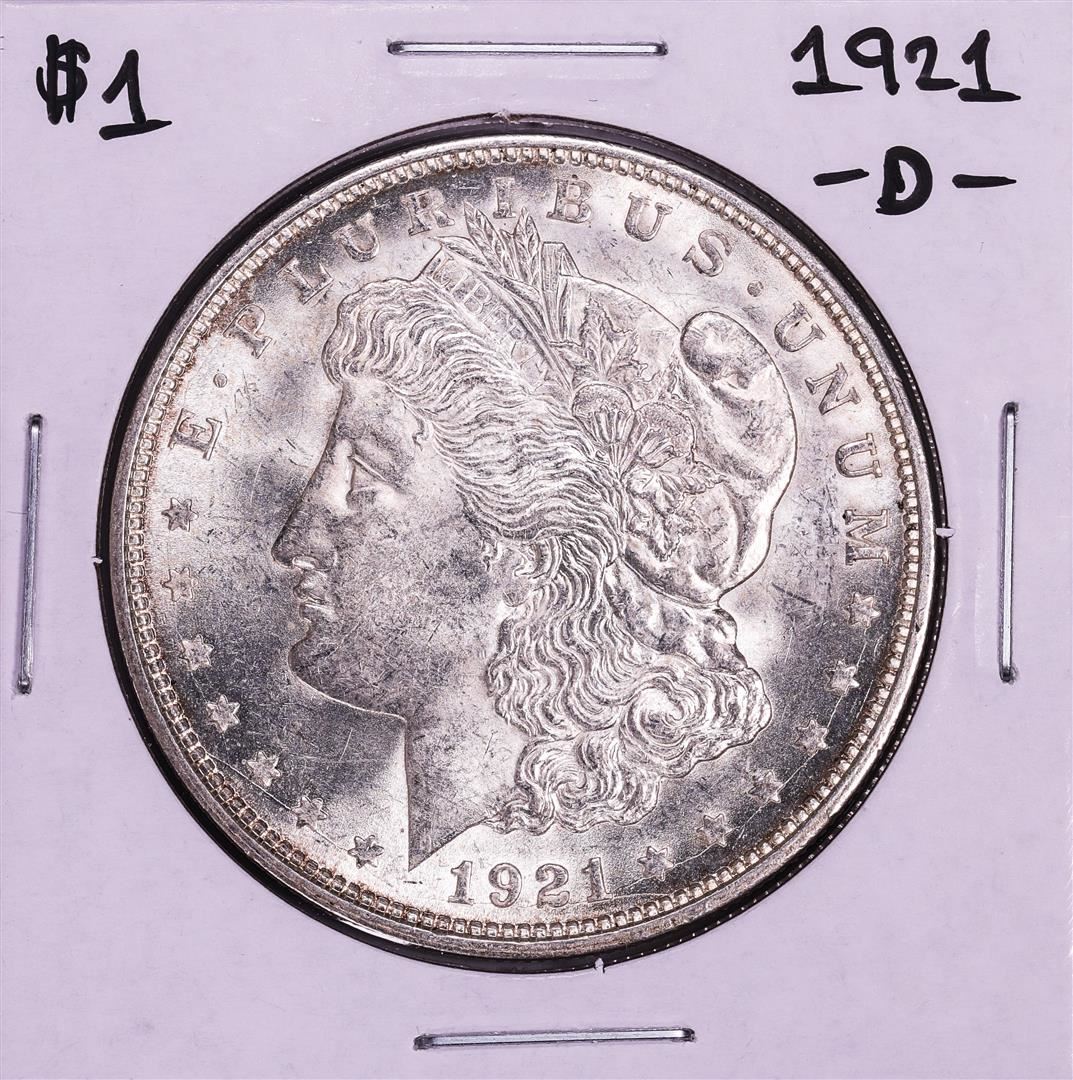 One 1921-D $1 Morgan Silver Dollar Coin.