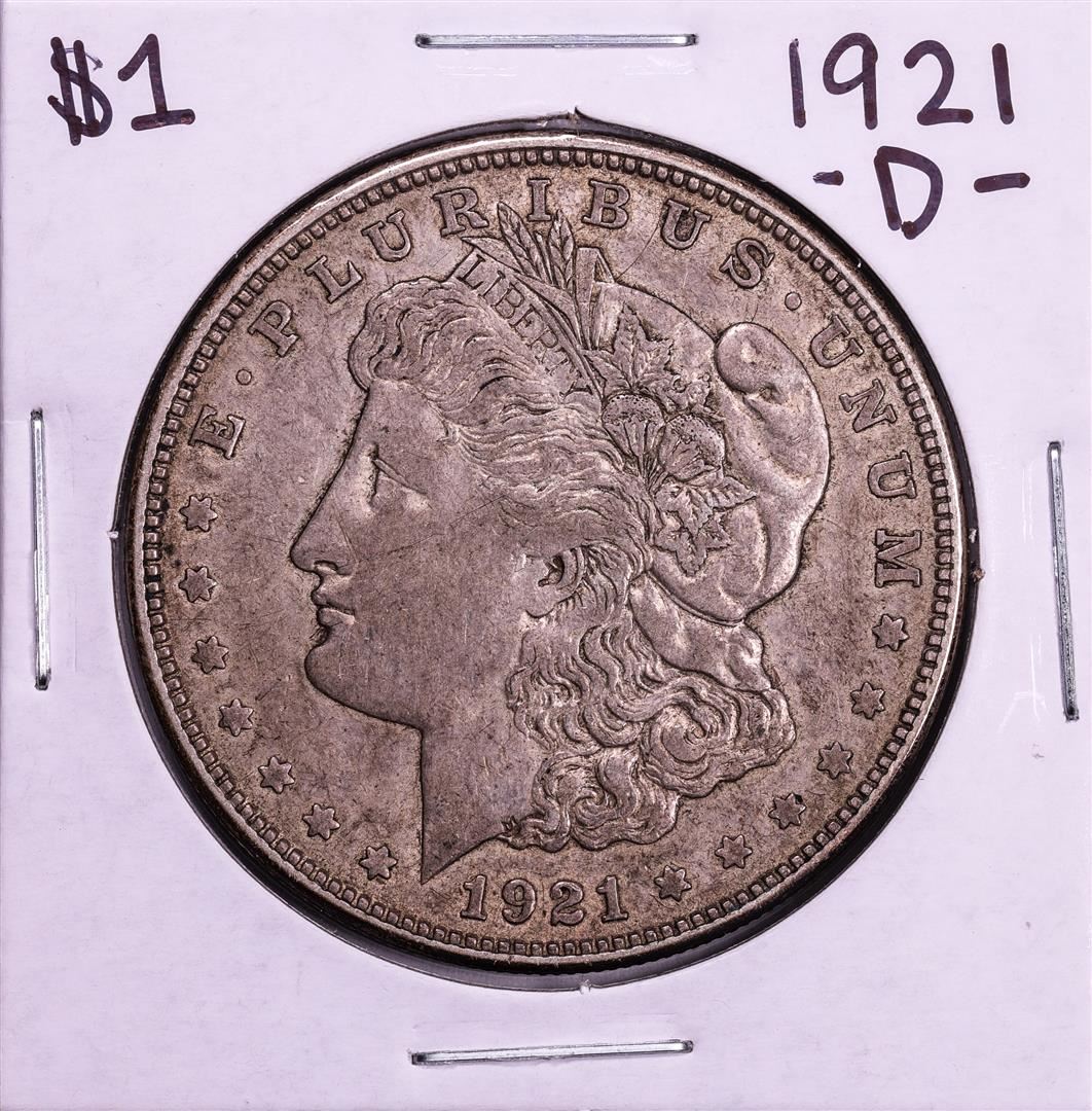 One 1921-D $1 Morgan Silver Dollar Coin.