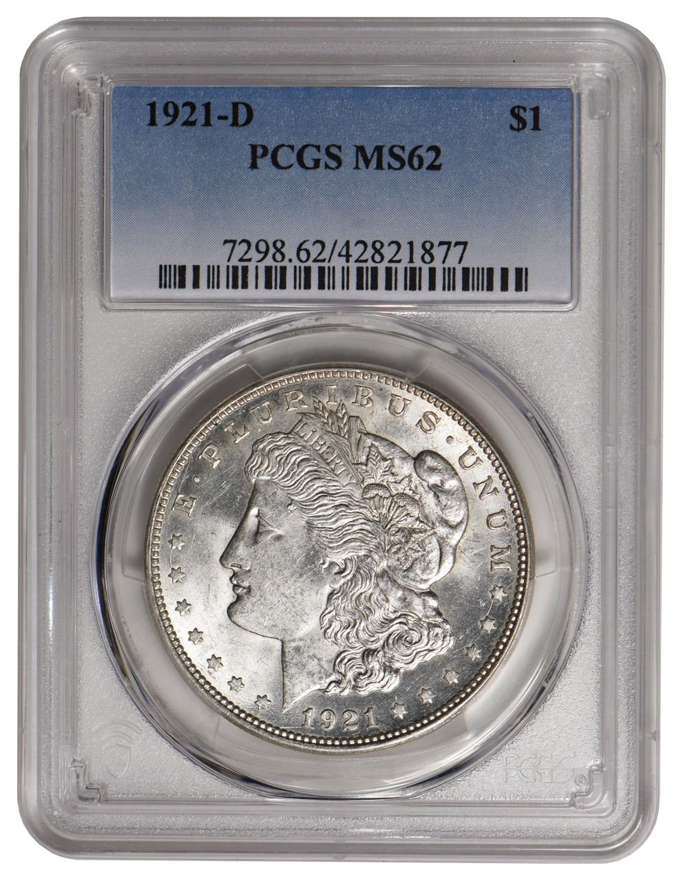 One 1921-D $1 Morgan Silver Dollar PCGS MS62.