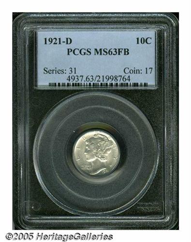 <B>1921-D<10C> MS63 Full Bands PCGS.</B></I> Lustrous, with just a little light milkiness and few speck-like imperfections.