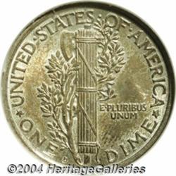 <B>1921-D<10C> MS65 Full Bands NGC.</B></I> An attractive Gem example of this popular key date. Mottled shades of reddish-gold and olive-gray patina amply decorate each side. Well defined throughout with good definition on the cross bands. <BR><BR><B>Important notice:</B> Heritage usually auctions material at the rate of 200-250 lots per hour. On some occasions eBay Live bid software or the Internet may not be able to keep up with the pace of the auction. We recommend placing a realistic absentee bid now as insurance to avoid disappointment. Occasionally the auctioneer may eliminate or reject an eBay Live bid, and the auctioneer may also reopen a lot after the close of the eBay live bidding (usually because we missed an audience bid), and may reject your bid even if it shows you as the winning bidder. By bidding via eBay Live, you agree that Heritage may award the lot to another bidder at its sole discretion under the circumstances described above or any other reasonable circumstances. Since eBay bids are not shown to us until we open the lot on the floor, we treat those bids just like floor bids. In most cases the floor responds before the eBay bid is presented to us, due to Internet lag time, so for consistency we have made it a policy that floor bids are always considered first over tie eBay live bids. Also please note that all Heritage lots purchased through eBay Live carry a 20% Buyer's Premium. Please make sure you read the Terms and Conditions before you bid. </span></font></tr></table></td></tr></table>