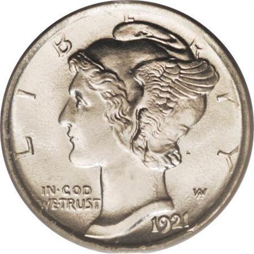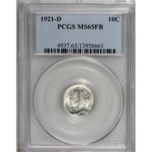 <B>1921-D 10C MS65 Full Bands PCGS.</B></I> A brilliant and unabraded Gem. The centers are precisely struck, although the lettering near the rims shows spreading. Only the 1916-D has a lower mintage than the 1921-D. The 1921-D is also significantly scarcer in quality Mint State than certain later low mintage issues, such as the 1931-D.<BR><BR><B>Coin Engraver:</B> Adolph A. Weinman<BR><BR><b>Shipping:</b> Coins & Currency (<a target="_blank" href="http://www.heritageauctions.com/common/shipping.php">view shipping information</a>)
