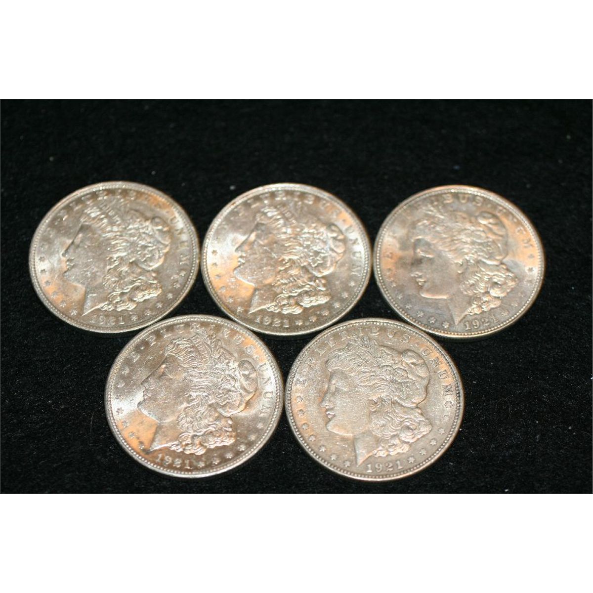 1921-D (2) & 1921 Silver Morgan one dollar, lot of 5