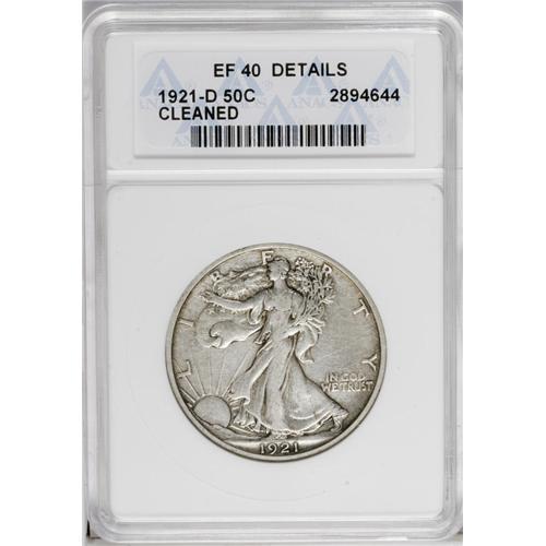 1921-D 50C --Cleaned--ANACS. XF40 Details. The pearl-gr