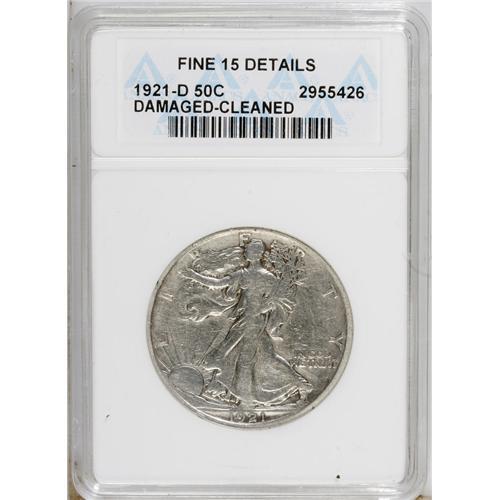 1921-D 50C --Cleaned, Damaged--ANACS. Fine 15 Details