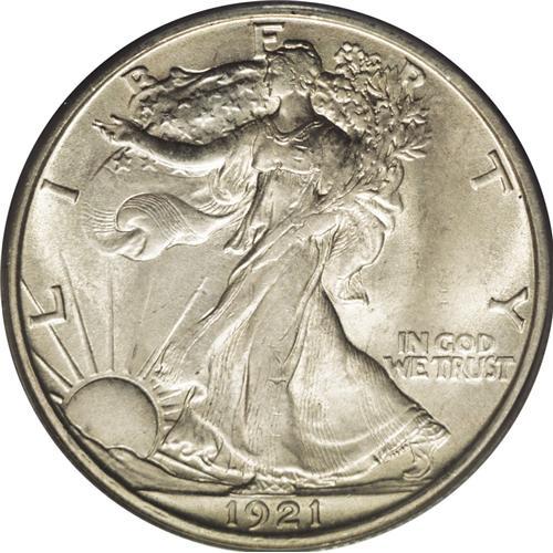 1921-D 50C MS64 PCGS. The satiny, brilliant surfaces a