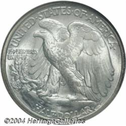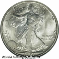 <table><tr><td><table><tr><td>1921-D 50C MS65 NGC. One of the widely recognized keys to the Walking Liberty Half Dollar set, the 1921-D has the lowest mintage of the series with a mere 208,000 pieces struck. It is very elusive above VF, and Mint State pieces are seldom seen, especially in this lofty condition, as few were saved. Fully possessed of thick mint luster, the surfaces are free from all but the tiniest blemishes. The strike wanes slightly over selected highpoints on each side, but this is hardly distracting. A very thin layer of gray-rose color overlays each side adding eye appeal and originality. Population: 15 in 65, 2 finer (3/04). <BR><BR><B>Important notice:</B> Heritage usually auctions material at the rate of 200-250 lots per hour. On some occasions eBay Live bid software or the Internet may not be able to keep up with the pace of the auction. We recommend placing a realistic absentee bid now as insurance to avoid disappointment. Occasionally the auctioneer may eliminate or reject an eBay Live bid, and the auctioneer may also reopen a lot after the close of the eBay live bidding (usually because we missed an audience bid), and may reject your bid even if it shows you as the winning bidder. By bidding via eBay Live, you agree that Heritage may award the lot to another bidder at its sole discretion under the circumstances described above or any other reasonable circumstances. Since eBay bids are not shown to us until we open the lot on the floor, we treat those bids just like floor bids. In most cases the floor responds before the eBay bid is presented to us, due to Internet lag time, so for consistency we have made it a policy that floor bids are always considered first over tie eBay live bids. Also please note that all Heritage lots purchased through eBay Live carry a 20% Buyer's Premium. Please make sure you read the Terms and Conditions before you bid. <BR><BR><B>IMPORTANT ANNOUNCEMENT ABOUT RESERVES:</B> Heritage now divulges all reserves on its web site 7 days before every auction. If you want to know whether the reserve on this lot has been met, and if not, what the reserve amount is, please visit this lot page on the HeritageCoin.com web site, or email: bid@HeritageGalleries.com </span></font></td></tr></table></td></tr></table>