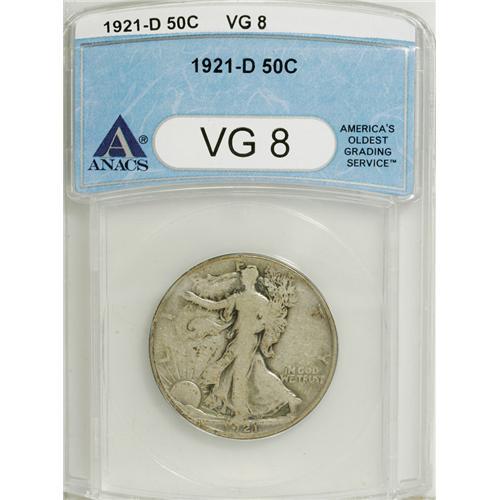 1921-D 50C VG8 ANACS. NGC Census: (88/437). PCGS Popul