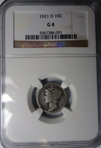 1921-D MERCURY DIME NGC GOOD 4 EST. $75.00-$85.00