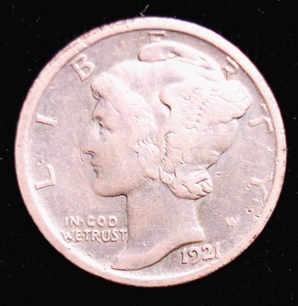 1921-D MERCURY DIME, ORIGINAL TONING NICE VF/XF