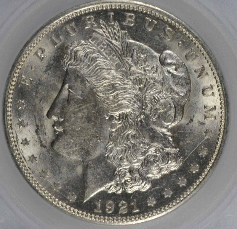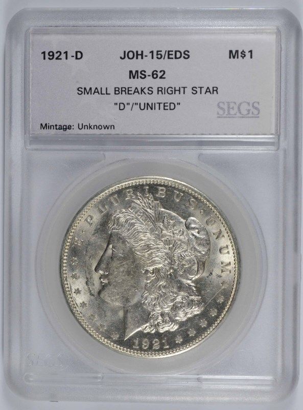 1921-D MORGAN DOLLAR SEGS MS-62 (JOH-15, EDS)