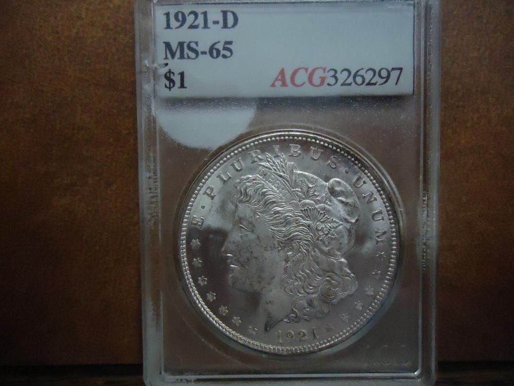 1921-D MORGAN SILVER DOLLAR ACG MS65