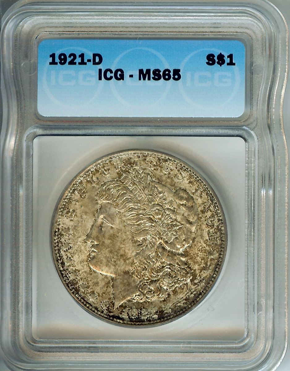1921-D MORGAN SILVER DOLLAR ICG MS65