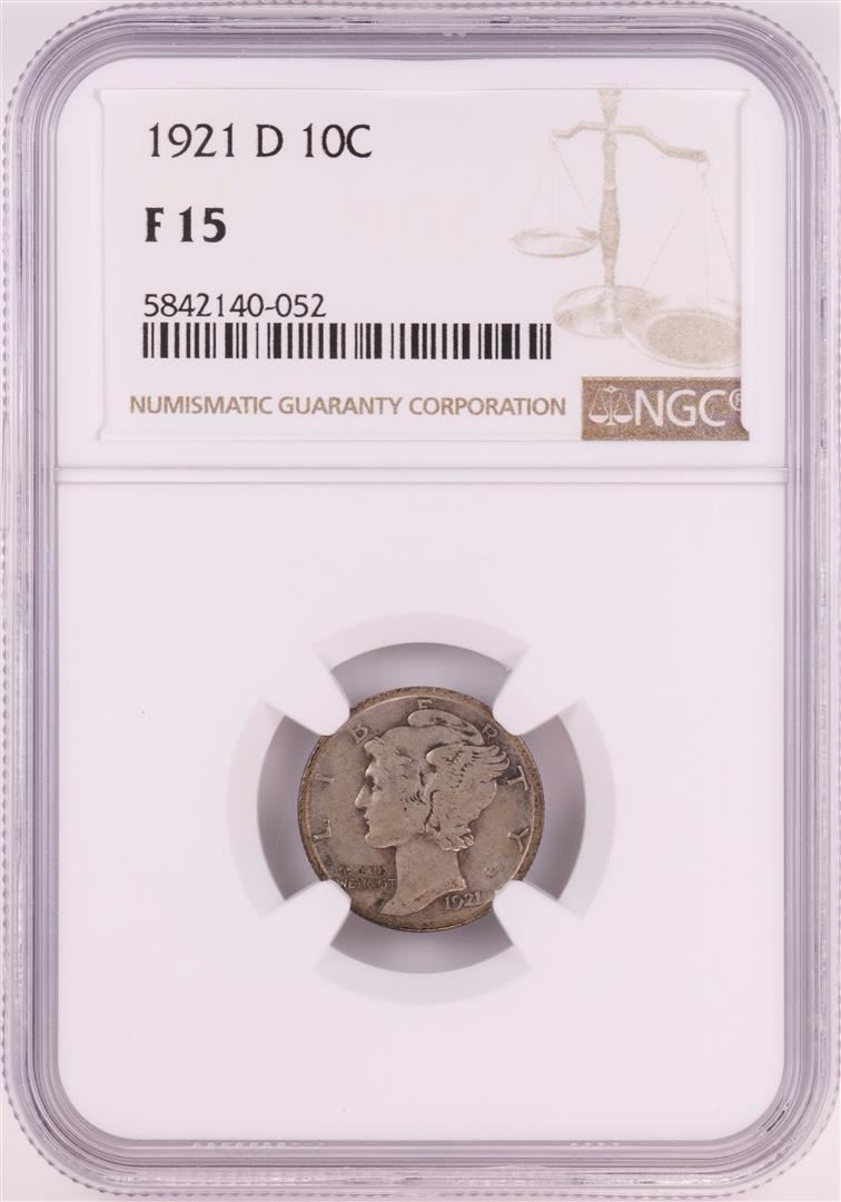 One 1921-D Mercury Dime Coin NGC F15. NGC Certified.