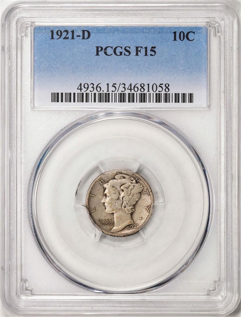One 1921-D Mercury Dime Coin PCGS F15. PCGS Graded.