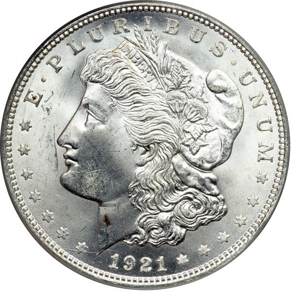 1921-D Morgan Dollar. PCGS graded MS-65. CAC Approved. Housed in an Old Green Holder. Well struck and white (PCGS # 7298) .