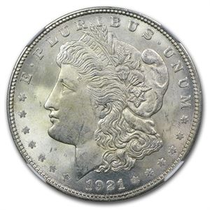 1921-D Morgan Dollar - MS-65 NGC **|**|** Year: 1921 ; Mint Mark: MS-65 ; Grade: D - Denver ; Denomination: 1 ; MSRP: $600