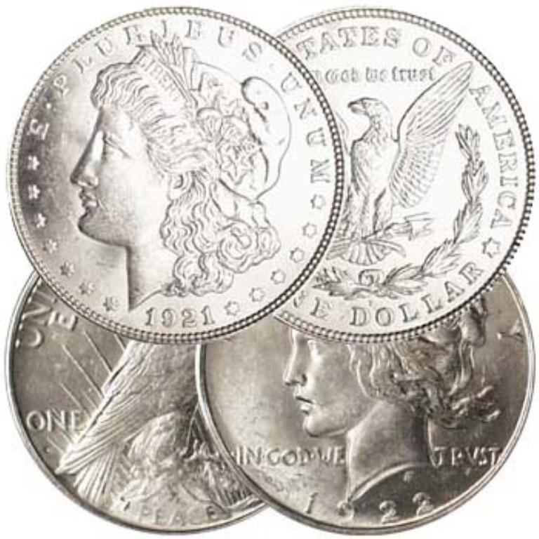 1921-D Denver Morgan Silver Dollar, BU -- Own the only Denver Mint Morgan silver dollar issue, with a "Micro D" mintmark & First 1922-D Denver Peace Silver Dollar, BU -- It had the lowest mintage of the Peace dollar's first major production year compa