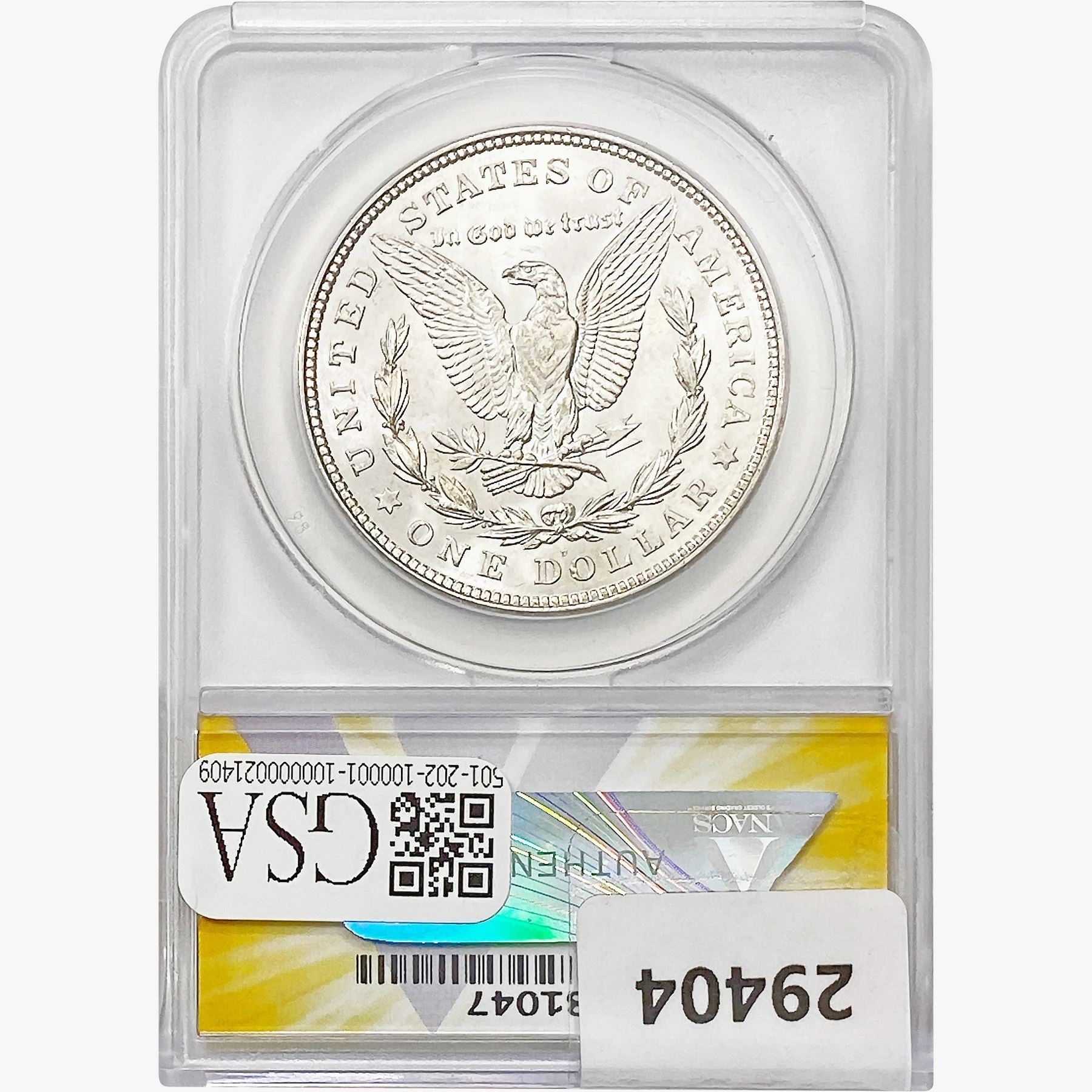 COINS AND CURRENCY LISTED IN GSA’S CATALOG AS GRADED AND ENCAPSULATED BY PCGS, NGC, ANACS, ICG, PCGS CURRENCY, PMG, PCGS BANKNOTE GRADING, CMC OR ANY OTHER THIRD-PARTY GRADING SERVICE ARE LIKEWISE SOLD “AS-IS” EXCEPT AS EXPRESSLY SET FORTH HEREIN. ALL THIRD-PARTY GRADING SERVICE GUARANTEES, INCLUDING AUTHENTICITY, ARE THE SOLE RESPONSIBILITY OF THE THIRD-PARTY GRADING SERVICE AND NOT WARRANTIES OR GUARANTEES OF GSA. BIDDERS SHOULD CONTACT THESE THIRD-PARTY GRADING SERVICES DIRECTLY WITH RESPECT TO ANY CLAIMS OR QUESTIONS THEY MAY HAVE CONCERNING THEIR GUARANTEES AND WARRANTIES. BIDDERS ACKNOWLEDGE AND AGREE THAT AUCTIONEER IS NOT BOUND BY OR LIABLE FOR ANY OPINION OR CERTIFICATION BY ANY THIRD-PARTY GRADING SERVICE. REMOVAL OF A PRODUCT FROM ITS PROTECTIVE CASING OR HOLDER OR ALTERATION OF ANY COIN HOLDER WAIVES ALL RIGHTS CONCERNING THE PRODUCT CONTAINED THEREIN.