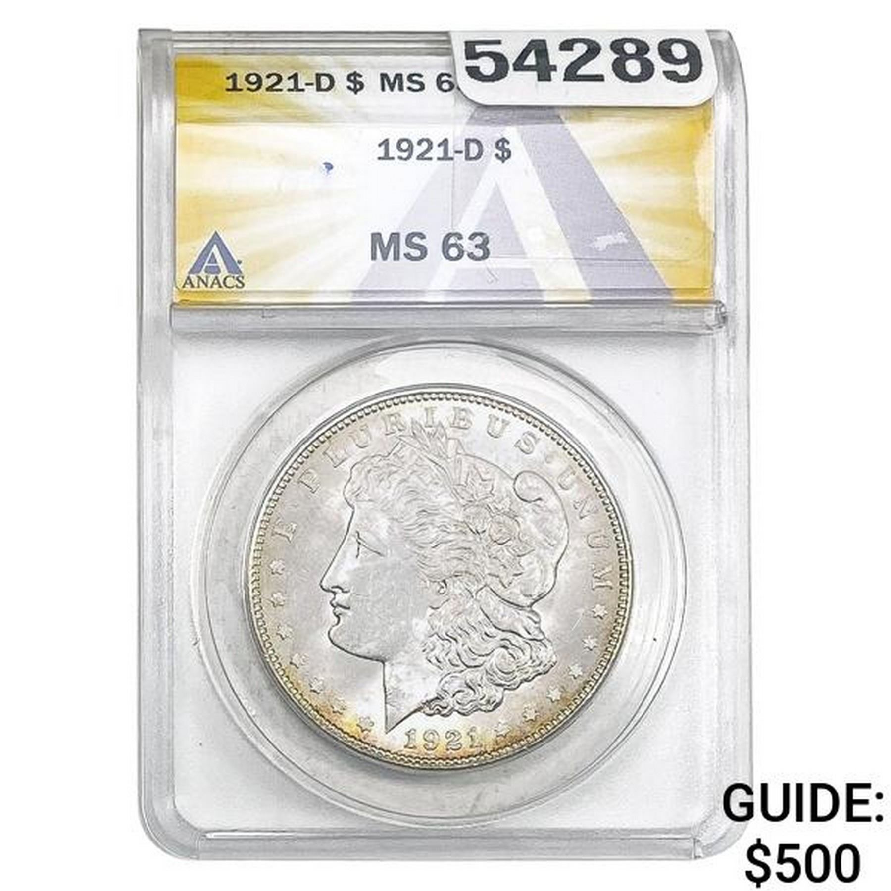 1921-D Morgan Silver Dollar ANACS MS63