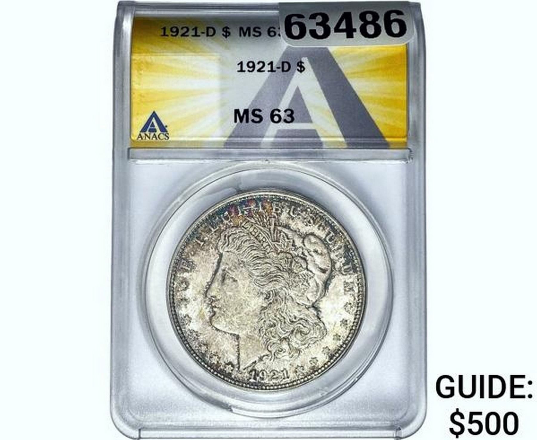 1921-D Morgan Silver Dollar ANACS MS63