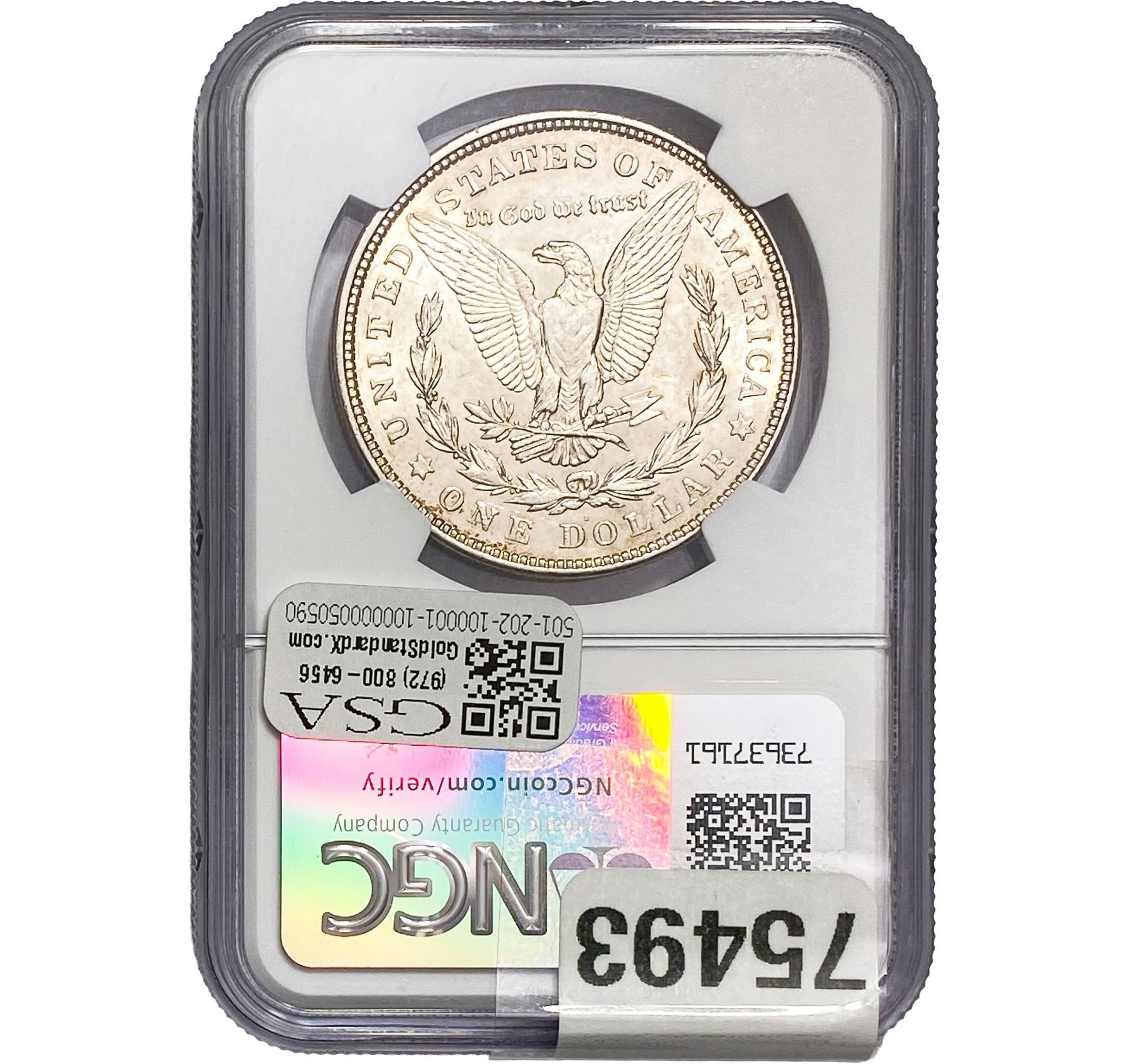 e. Coins sold referencing a third-party grading service are sold “AS IS” without any express or implied warranty, except for a guarantee by GSA that they are genuine. Removal or alteration of the holder, voids all of Bidder’s claims concerning that Product. Certain warranties may be available from the grading services and Bidders are referred to them for further details: Numismatic Guaranty Corporation (NGC), PO Box 4776, Sarasota, FL 34230, www.ngccoin.com/services/writtenguarantee.asp; Professional Coin Grading Services (PCGS), PO Box 9458, Newport Beach, CA 92658, www.pcgs.com/guarantee.html; ANACS, 6555 S. Kenton St., Ste. 303, Englewood, CO 80111; and Independent Coin Grading Co. (ICG), 7901 East Bellview, Ave., Suite 50, Englewood, CO 80111.