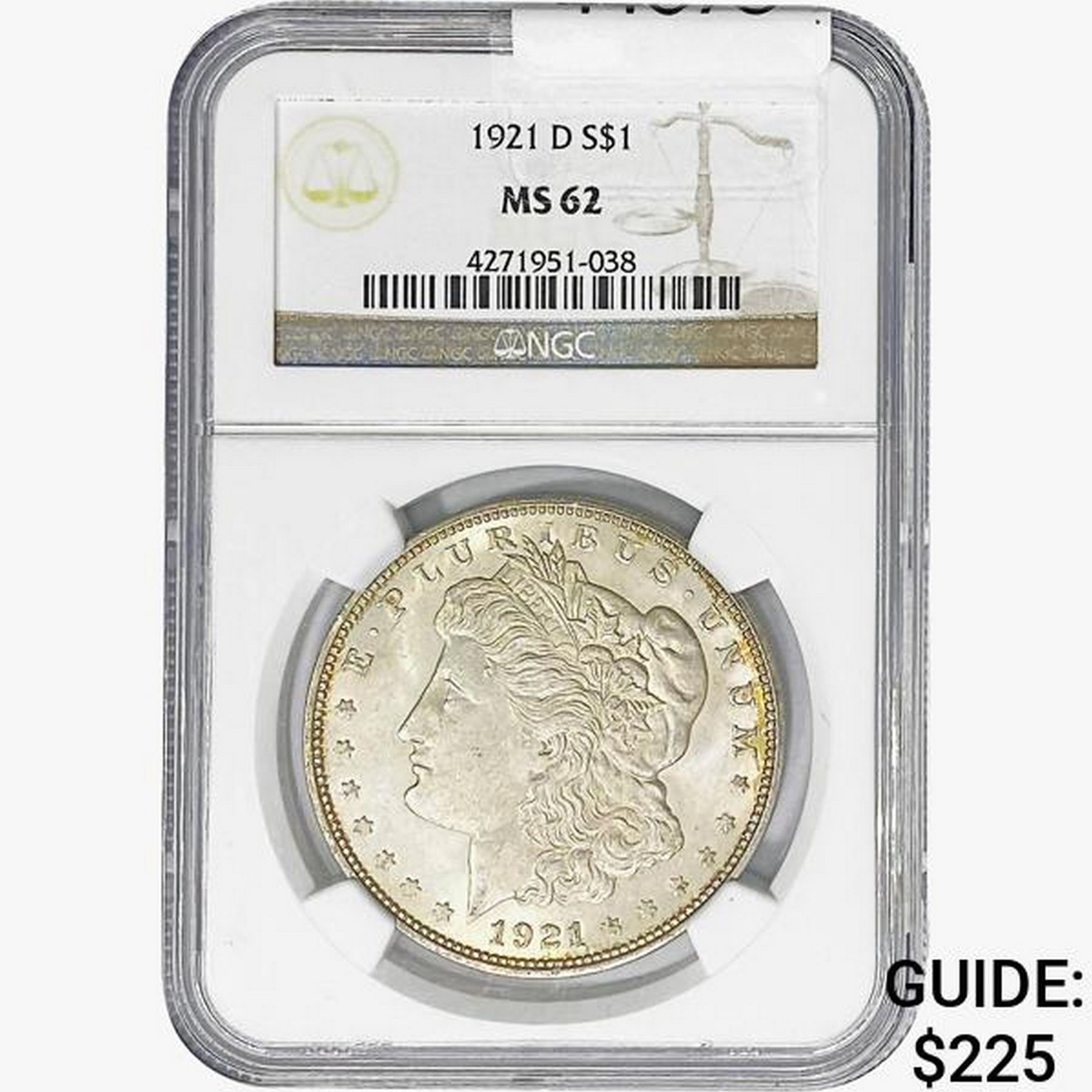 1921-D Morgan Silver Dollar NGC MS62