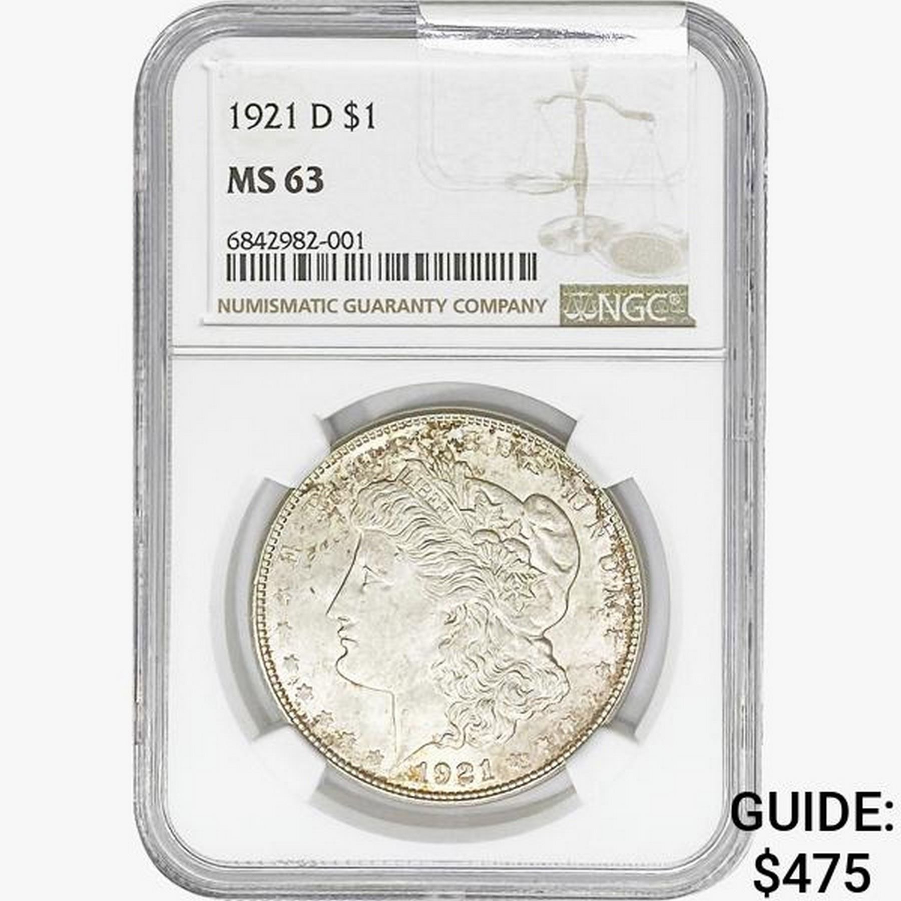 1921-D Morgan Silver Dollar NGC MS63