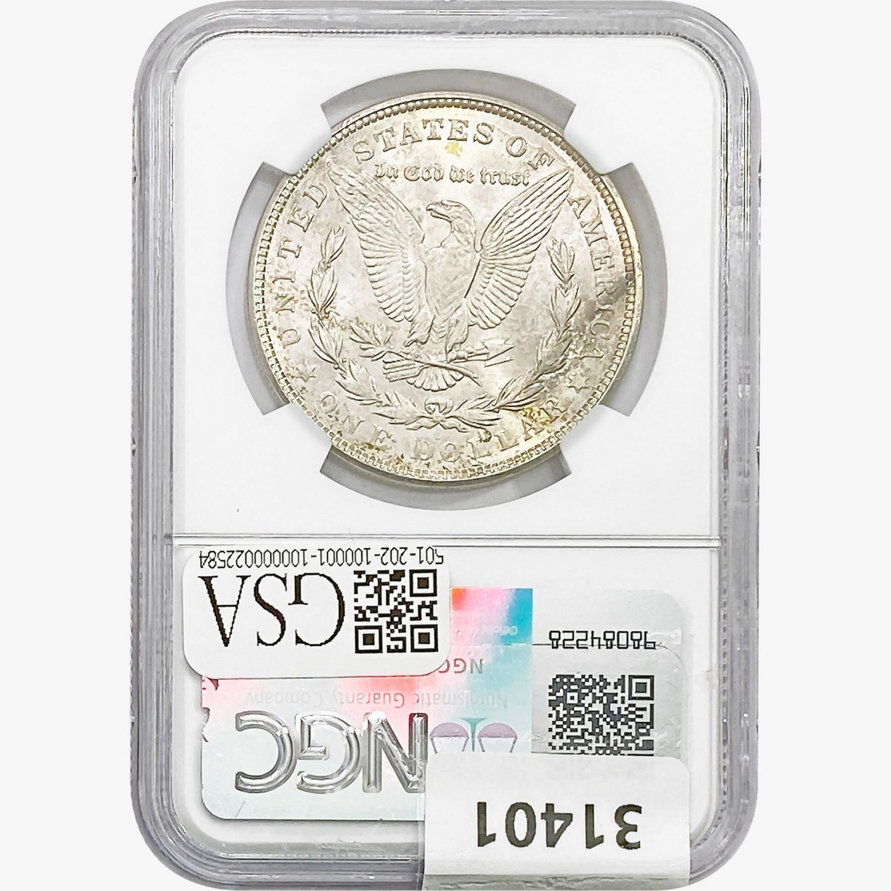 COINS AND CURRENCY LISTED IN GSA’S CATALOG AS GRADED AND ENCAPSULATED BY PCGS, NGC, ANACS, ICG, PCGS CURRENCY, PMG, PCGS BANKNOTE GRADING, CMC OR ANY OTHER THIRD-PARTY GRADING SERVICE ARE LIKEWISE SOLD “AS-IS” EXCEPT AS EXPRESSLY SET FORTH HEREIN. ALL THIRD-PARTY GRADING SERVICE GUARANTEES, INCLUDING AUTHENTICITY, ARE THE SOLE RESPONSIBILITY OF THE THIRD-PARTY GRADING SERVICE AND NOT WARRANTIES OR GUARANTEES OF GSA. BIDDERS SHOULD CONTACT THESE THIRD-PARTY GRADING SERVICES DIRECTLY WITH RESPECT TO ANY CLAIMS OR QUESTIONS THEY MAY HAVE CONCERNING THEIR GUARANTEES AND WARRANTIES. BIDDERS ACKNOWLEDGE AND AGREE THAT AUCTIONEER IS NOT BOUND BY OR LIABLE FOR ANY OPINION OR CERTIFICATION BY ANY THIRD-PARTY GRADING SERVICE. REMOVAL OF A PRODUCT FROM ITS PROTECTIVE CASING OR HOLDER OR ALTERATION OF ANY COIN HOLDER WAIVES ALL RIGHTS CONCERNING THE PRODUCT CONTAINED THEREIN.