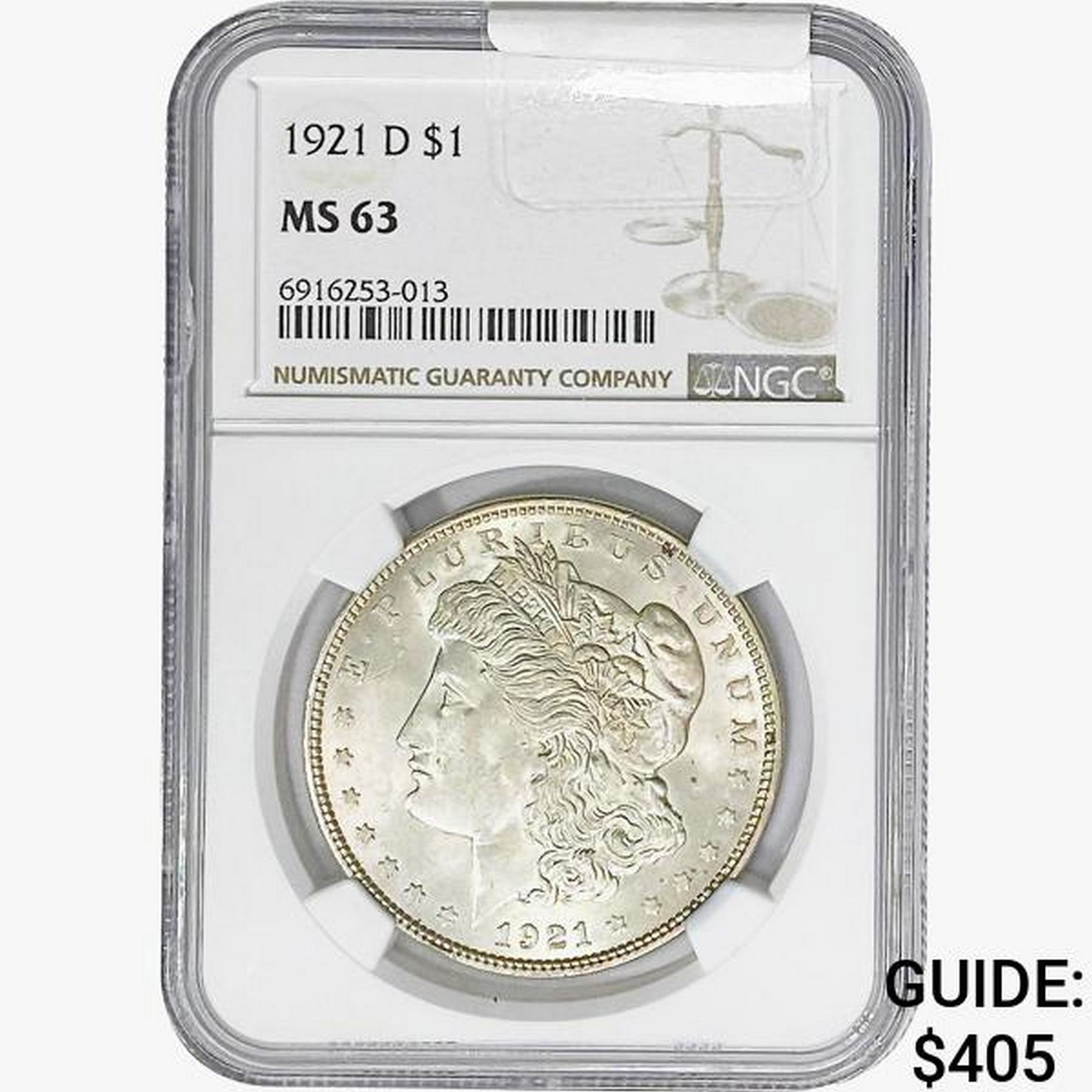1921-D Morgan Silver Dollar NGC MS63