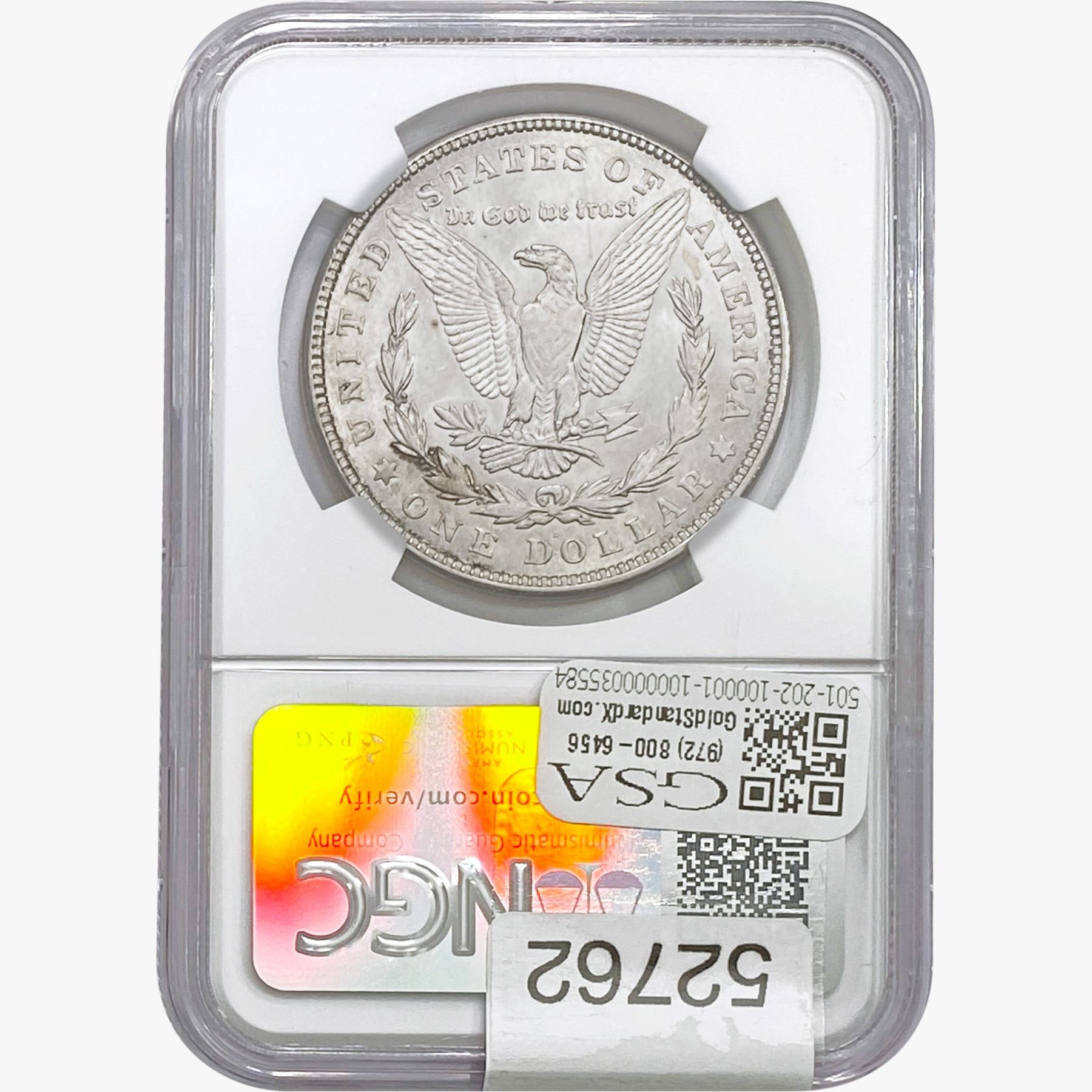 e. Coins sold referencing a third-party grading service are sold “AS IS” without any express or implied warranty, except for a guarantee by GSA that they are genuine. Removal or alteration of the holder, voids all of Bidder’s claims concerning that Product. Certain warranties may be available from the grading services and Bidders are referred to them for further details: Numismatic Guaranty Corporation (NGC), PO Box 4776, Sarasota, FL 34230, www.ngccoin.com/services/writtenguarantee.asp; Professional Coin Grading Services (PCGS), PO Box 9458, Newport Beach, CA 92658, www.pcgs.com/guarantee.html; ANACS, 6555 S. Kenton St., Ste. 303, Englewood, CO 80111; and Independent Coin Grading Co. (ICG), 7901 East Bellview, Ave., Suite 50, Englewood, CO 80111.