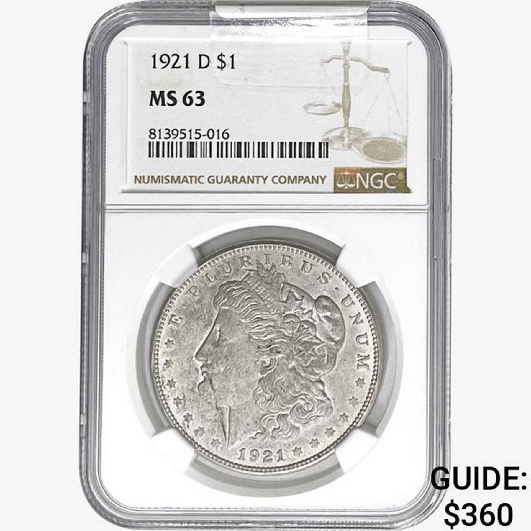 1921-D Morgan Silver Dollar NGC MS63