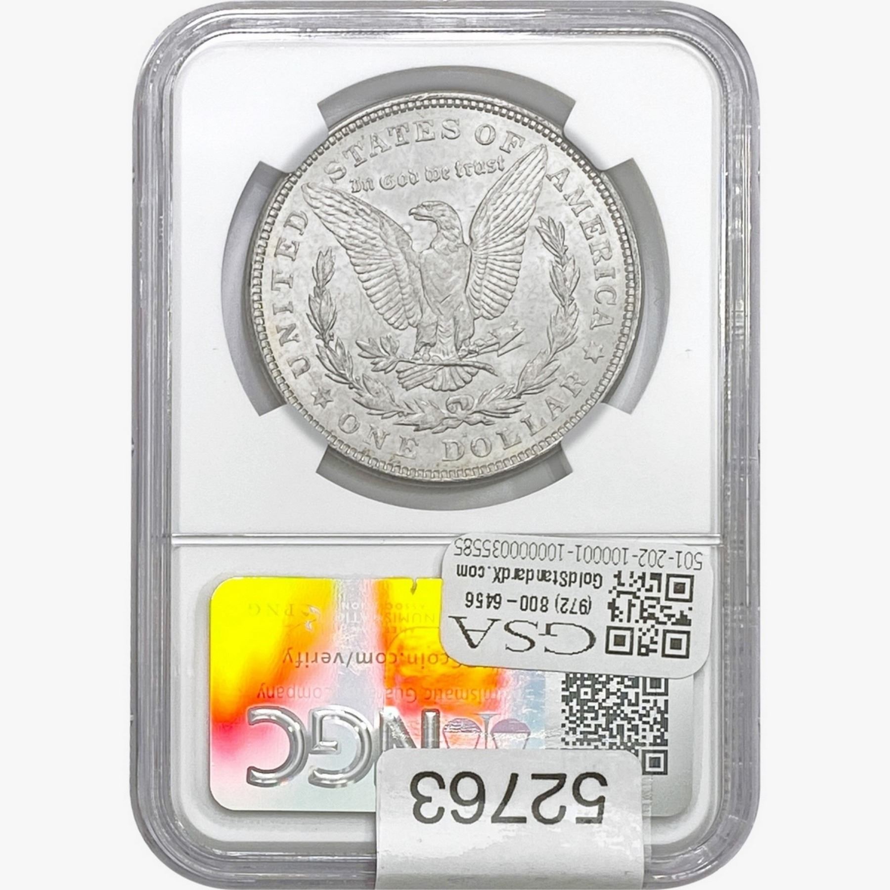 e. Coins sold referencing a third-party grading service are sold “AS IS” without any express or implied warranty, except for a guarantee by GSA that they are genuine. Removal or alteration of the holder, voids all of Bidder’s claims concerning that Product. Certain warranties may be available from the grading services and Bidders are referred to them for further details: Numismatic Guaranty Corporation (NGC), PO Box 4776, Sarasota, FL 34230, www.ngccoin.com/services/writtenguarantee.asp; Professional Coin Grading Services (PCGS), PO Box 9458, Newport Beach, CA 92658, www.pcgs.com/guarantee.html; ANACS, 6555 S. Kenton St., Ste. 303, Englewood, CO 80111; and Independent Coin Grading Co. (ICG), 7901 East Bellview, Ave., Suite 50, Englewood, CO 80111.
