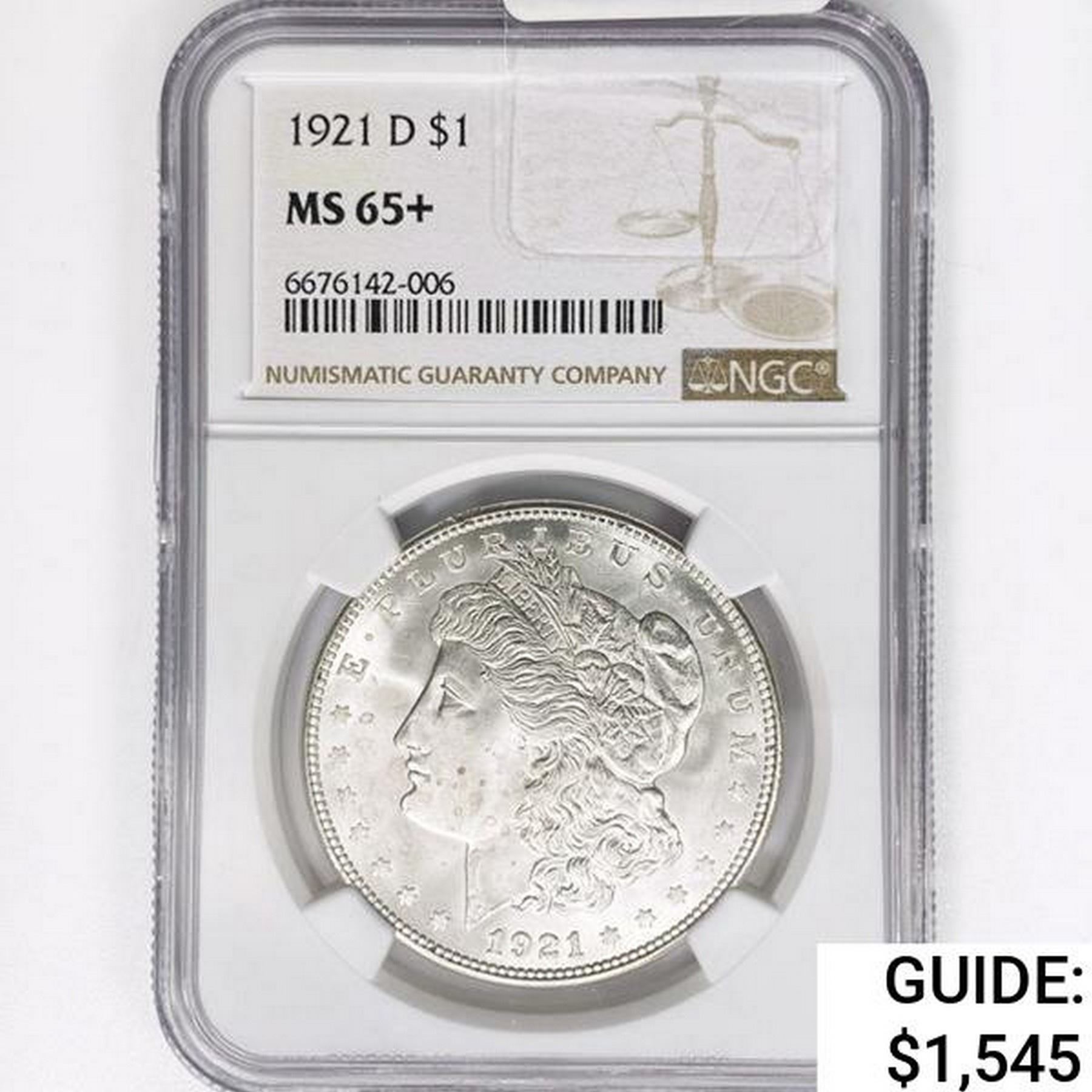 1921-D Morgan Silver Dollar NGC MS65+