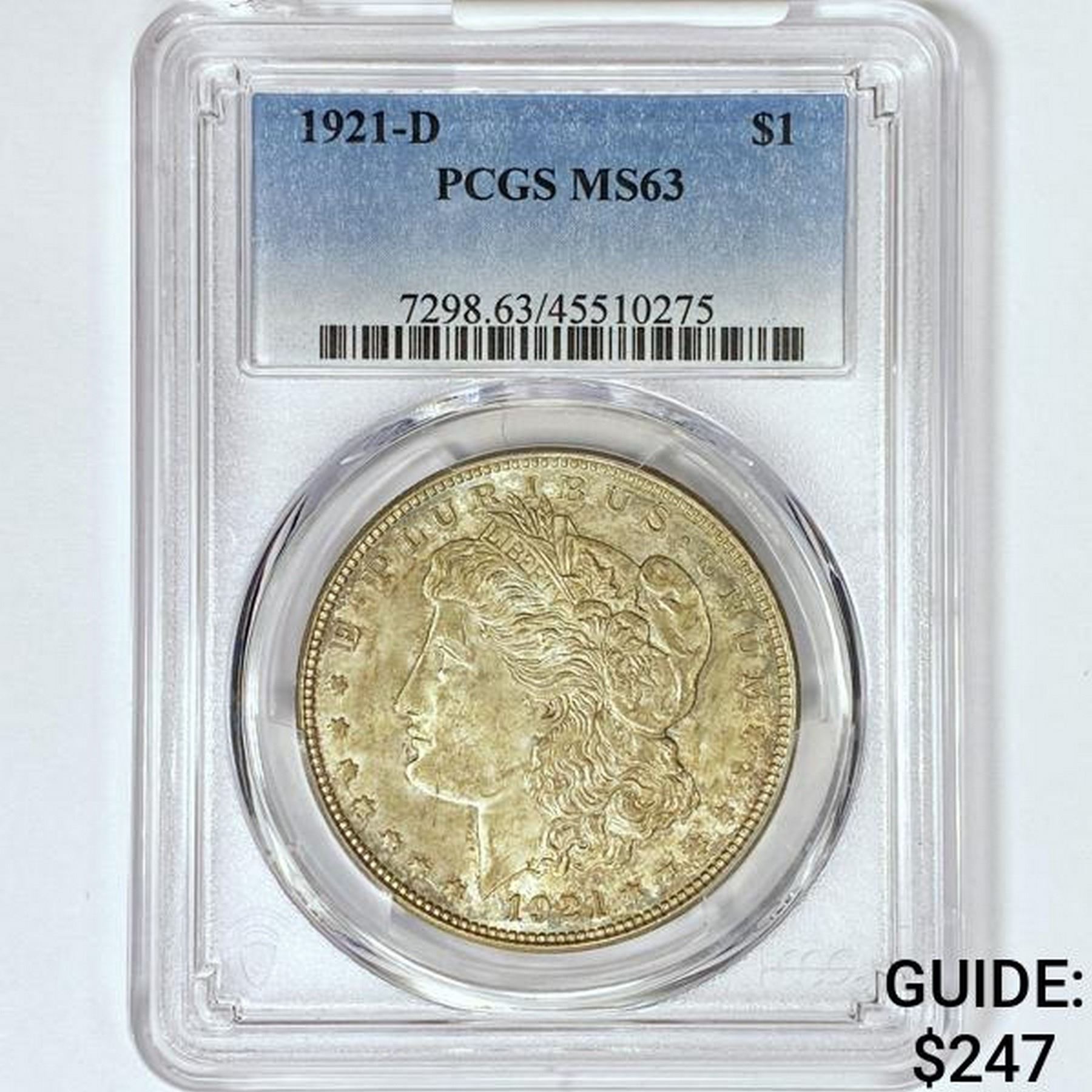 1921-D Morgan Silver Dollar PCGS MS63
