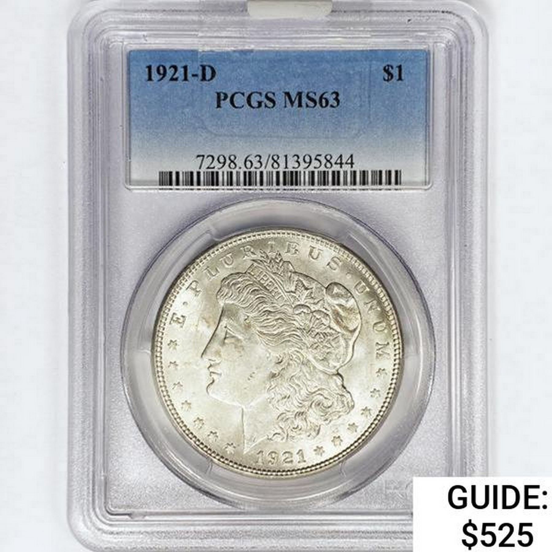 1921-D Morgan Silver Dollar PCGS MS63