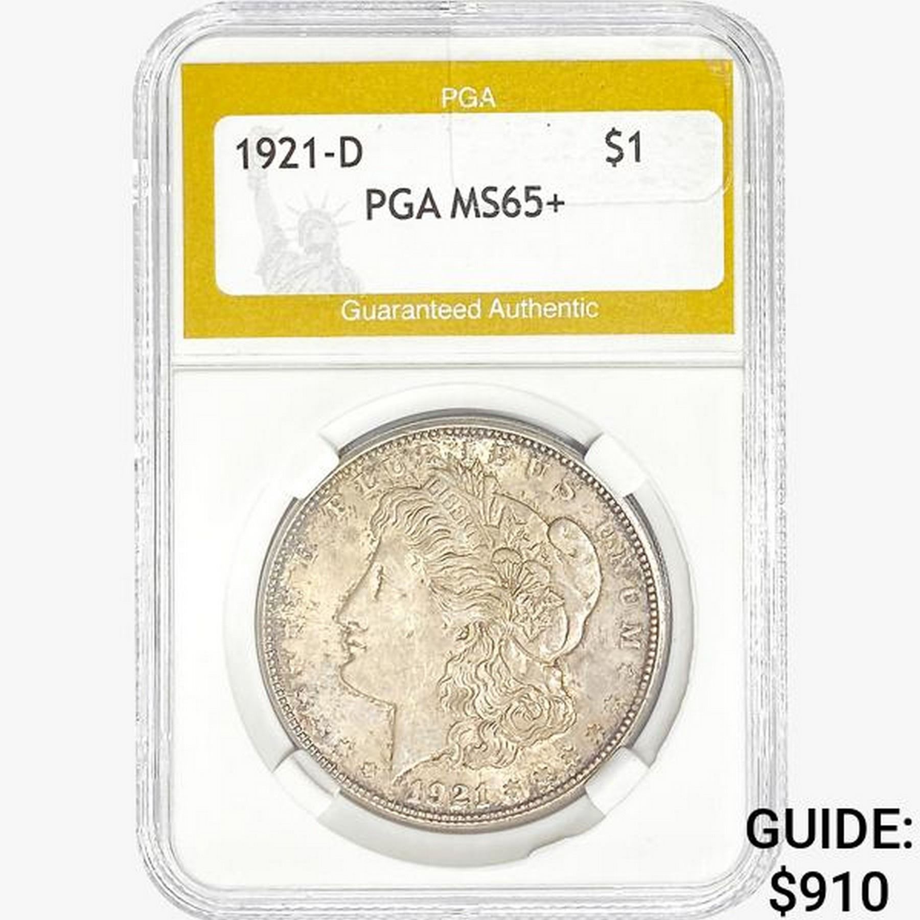 1921-D Morgan Silver Dollar PGA MS65+