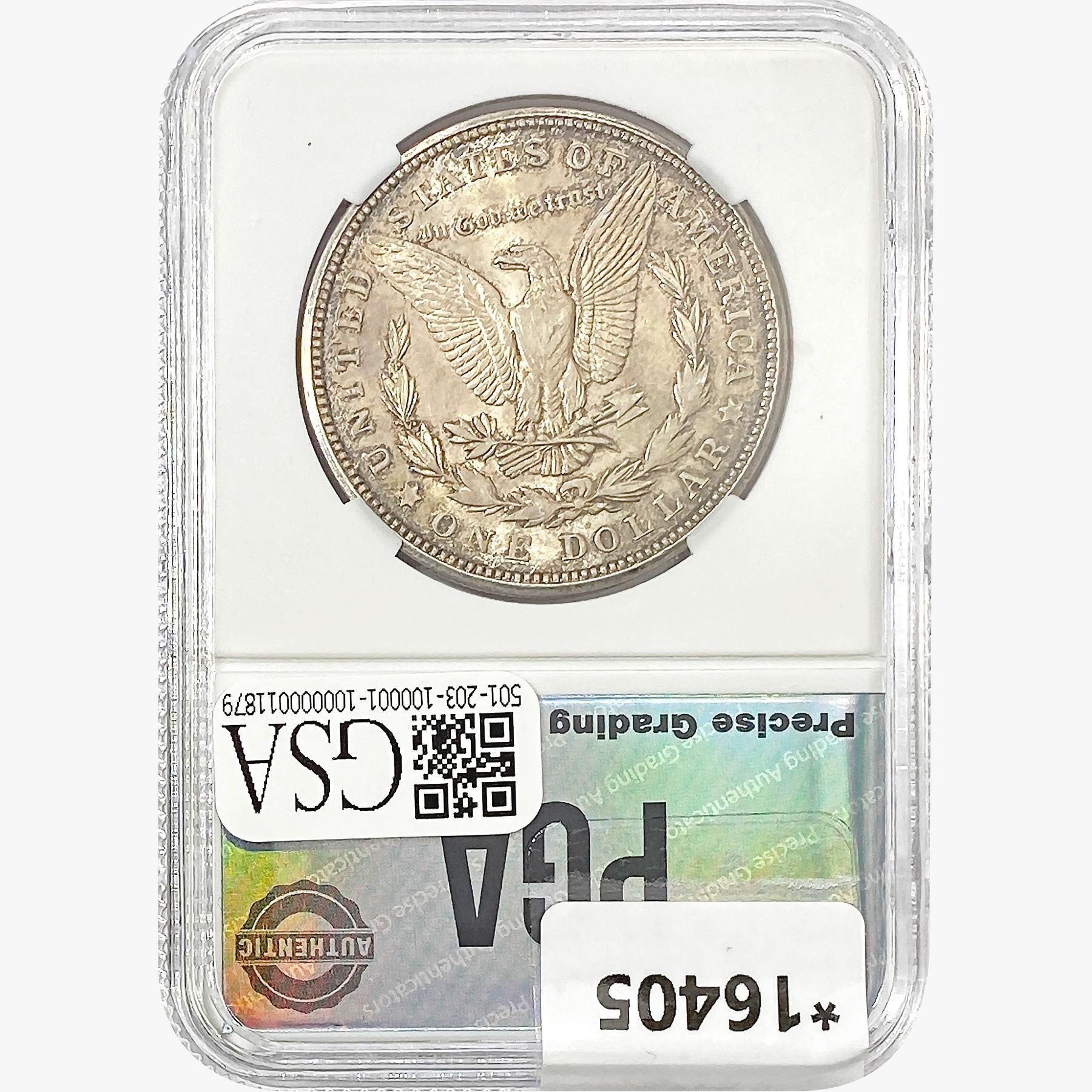 COINS AND CURRENCY LISTED IN GSA’S CATALOG AS GRADED AND ENCAPSULATED BY PCGS, NGC, ANACS, ICG, PCGS CURRENCY, PMG, PCGS BANKNOTE GRADING, CMC OR ANY OTHER THIRD-PARTY GRADING SERVICE ARE LIKEWISE SOLD “AS-IS” EXCEPT AS EXPRESSLY SET FORTH HEREIN. ALL THIRD-PARTY GRADING SERVICE GUARANTEES, INCLUDING AUTHENTICITY, ARE THE SOLE RESPONSIBILITY OF THE THIRD-PARTY GRADING SERVICE AND NOT WARRANTIES OR GUARANTEES OF GSA. BIDDERS SHOULD CONTACT THESE THIRD-PARTY GRADING SERVICES DIRECTLY WITH RESPECT TO ANY CLAIMS OR QUESTIONS THEY MAY HAVE CONCERNING THEIR GUARANTEES AND WARRANTIES. BIDDERS ACKNOWLEDGE AND AGREE THAT AUCTIONEER IS NOT BOUND BY OR LIABLE FOR ANY OPINION OR CERTIFICATION BY ANY THIRD-PARTY GRADING SERVICE. REMOVAL OF A PRODUCT FROM ITS PROTECTIVE CASING OR HOLDER OR ALTERATION OF ANY COIN HOLDER WAIVES ALL RIGHTS CONCERNING THE PRODUCT CONTAINED THEREIN.