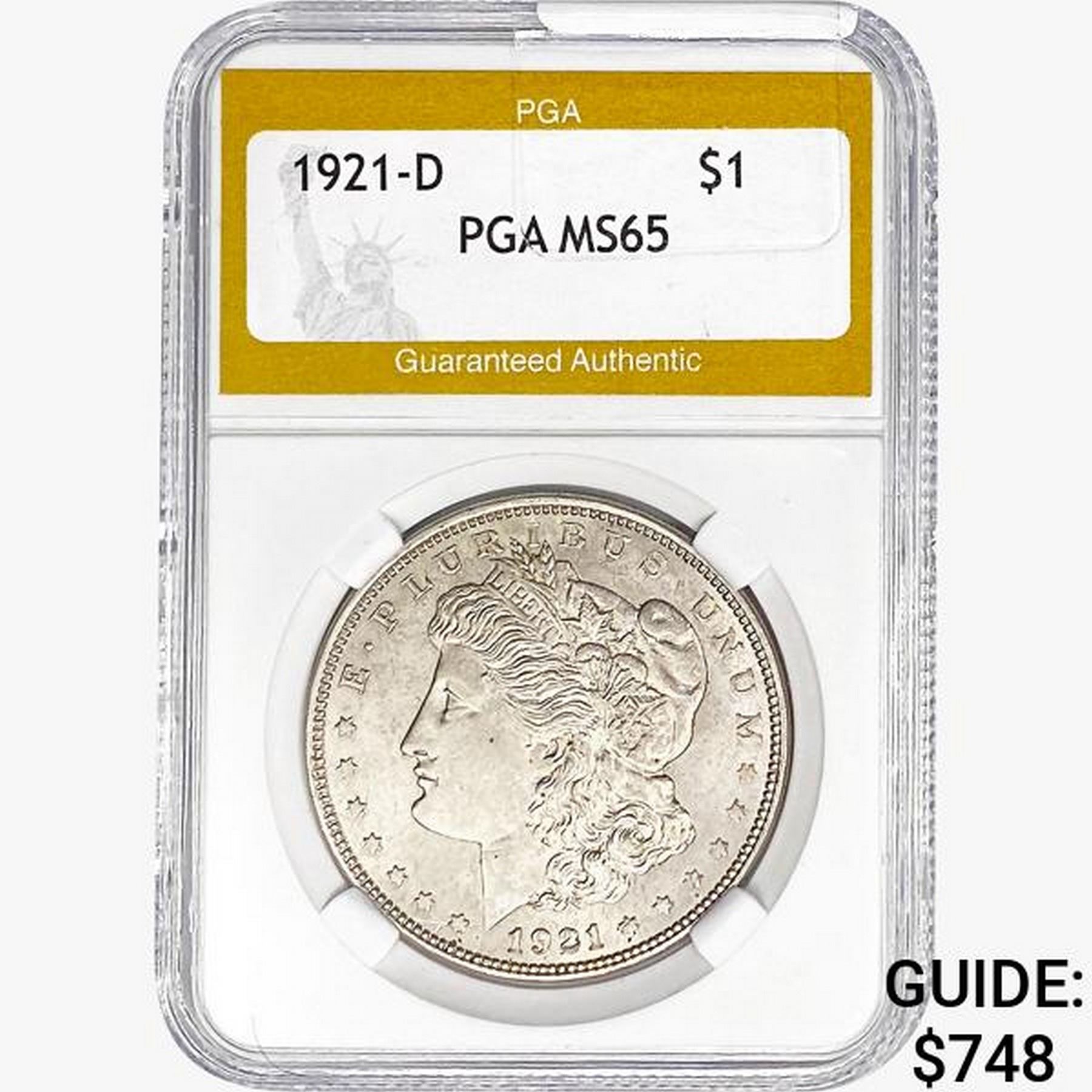 1921-D Morgan Silver Dollar PGA MS65