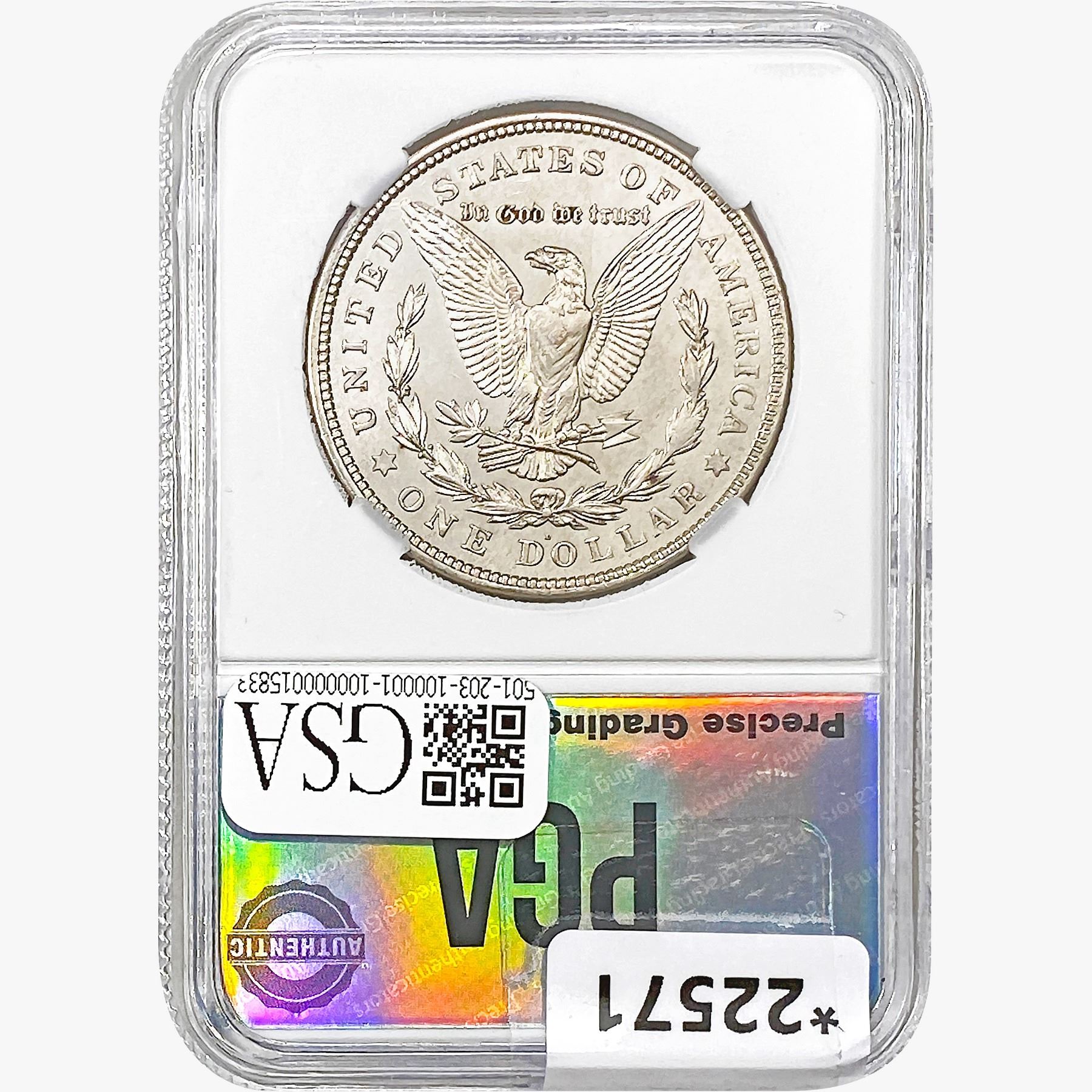 COINS AND CURRENCY LISTED IN GSA’S CATALOG AS GRADED AND ENCAPSULATED BY PCGS, NGC, ANACS, ICG, PCGS CURRENCY, PMG, PCGS BANKNOTE GRADING, CMC OR ANY OTHER THIRD-PARTY GRADING SERVICE ARE LIKEWISE SOLD “AS-IS” EXCEPT AS EXPRESSLY SET FORTH HEREIN. ALL THIRD-PARTY GRADING SERVICE GUARANTEES, INCLUDING AUTHENTICITY, ARE THE SOLE RESPONSIBILITY OF THE THIRD-PARTY GRADING SERVICE AND NOT WARRANTIES OR GUARANTEES OF GSA. BIDDERS SHOULD CONTACT THESE THIRD-PARTY GRADING SERVICES DIRECTLY WITH RESPECT TO ANY CLAIMS OR QUESTIONS THEY MAY HAVE CONCERNING THEIR GUARANTEES AND WARRANTIES. BIDDERS ACKNOWLEDGE AND AGREE THAT AUCTIONEER IS NOT BOUND BY OR LIABLE FOR ANY OPINION OR CERTIFICATION BY ANY THIRD-PARTY GRADING SERVICE. REMOVAL OF A PRODUCT FROM ITS PROTECTIVE CASING OR HOLDER OR ALTERATION OF ANY COIN HOLDER WAIVES ALL RIGHTS CONCERNING THE PRODUCT CONTAINED THEREIN.