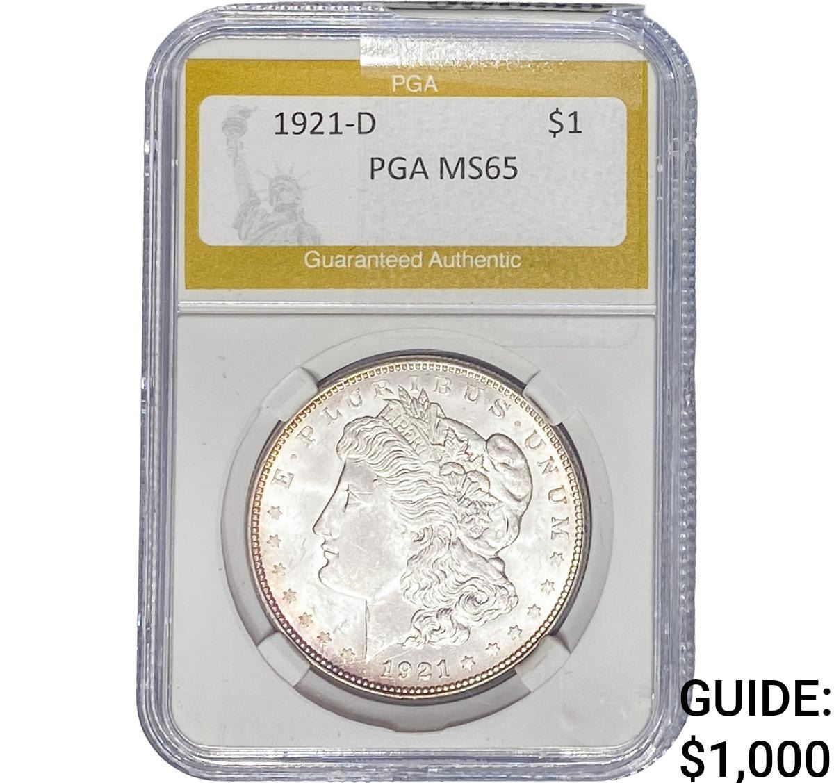 1921-D Morgan Silver Dollar PGA MS65
