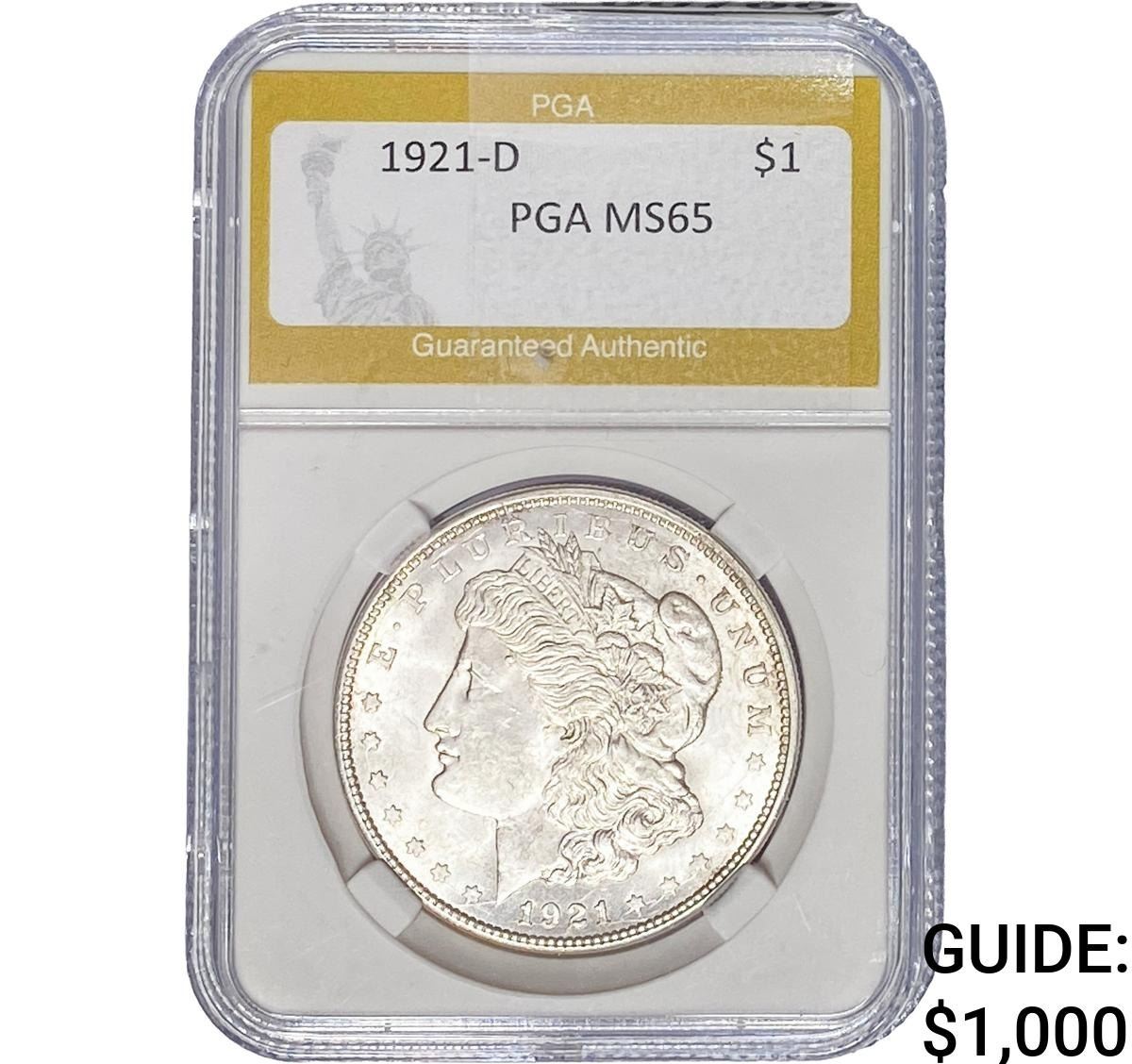 1921-D Morgan Silver Dollar PGA MS65